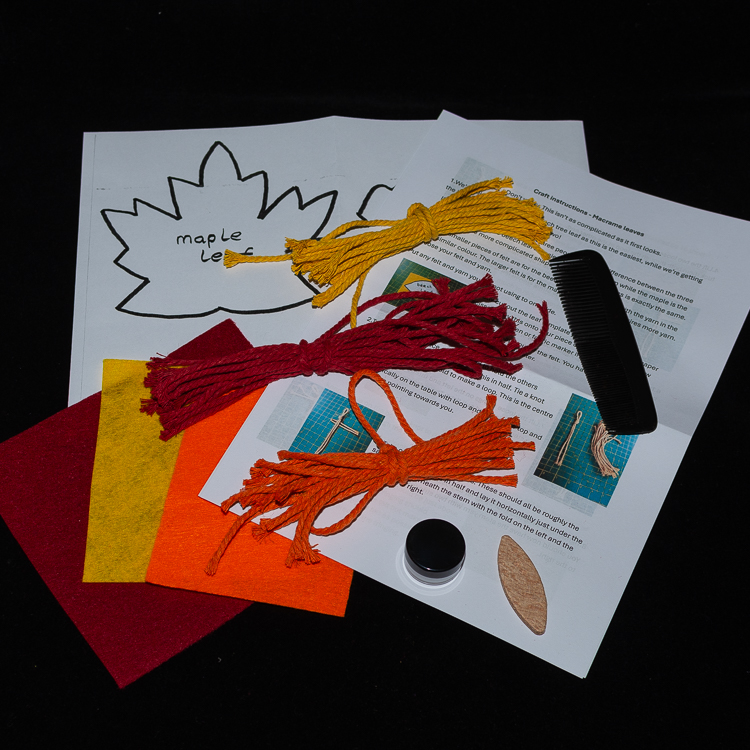 Get in the autumnal mood with these simple macrame leaves in beautiful autumn coloured yarns. The kit includes enough materials to create three leaves, you can then hang the leaves individually or arrange them together to make an autumn mobile.